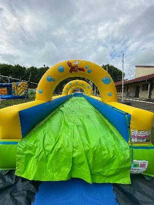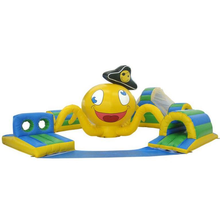Jeu Gonflable Pieuvre : Échappons aux tentacules ! Avec son design original et rigolo, le Complexe Pieuvre Jaune est un parcours gonflable qui aura un succès assuré auprès des plus petits. Notre complexe gonflable est composé de quatre modules d'obstacles : un toboggan, un module composé d'un mur gonflable avec 2 sorties, un tunnel et un autre tunnel avec obstacles. Les enfants voudront jouer avec chacune des tentacules de cette pieuvre et réussir à franchir tous les obstacles le plus rapidement possible. Une grande Pieuvre jaune se situe au centre du jeu et permet, grâce à ses tentacules, de former un parcours tout autour d'elle.