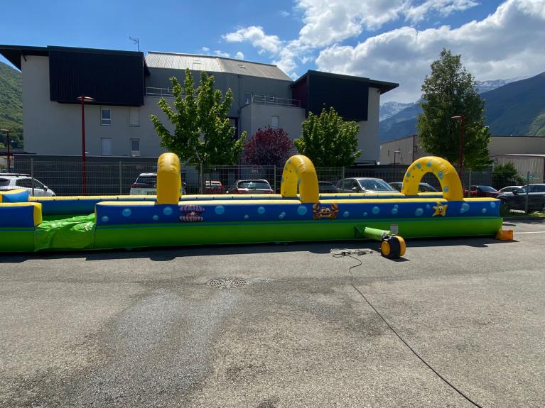 Avec ses 13 m de long, ce jeu offre à tous les meilleures sensations en glissant sur le ventre en tout amusement. Plongez sur le matelas